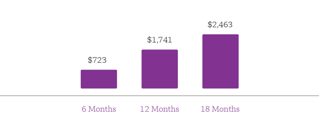 For Wells Fargo Home Furnishings cardholders who used No Interest if Paid in Full plans with 6-, 12-, or 18-month terms, there was a clear correlation between plan length and ticket size. In fact, the average ticket more than doubled when going from 6 months to 12 months and increased by over 40% when going from 12 months to 18 months.¹