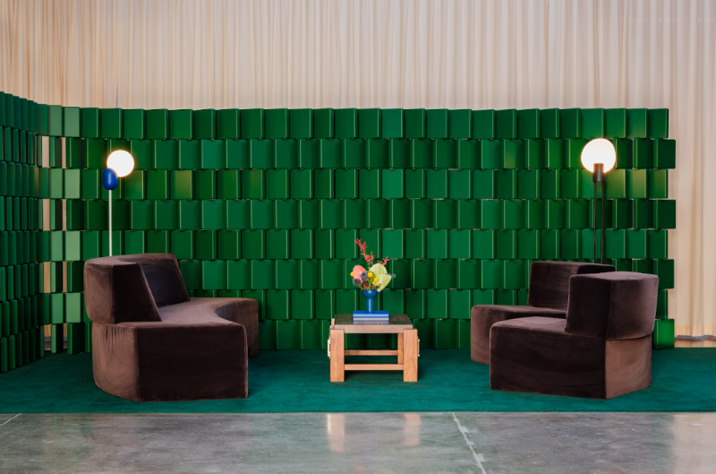 Inside the space, there’s a communal worktable with 10 seats and a seating area with velvet sofas and framed by a wall of 3D-printed tiles. Gantri’s new showroom is an example of the kind of experiential design that is becoming increasingly important to capture consumer attention in today’s retail economy. But beyond that, it’s an example of a space that fosters a sense of community and allows for collaboration that can’t be replicated online.