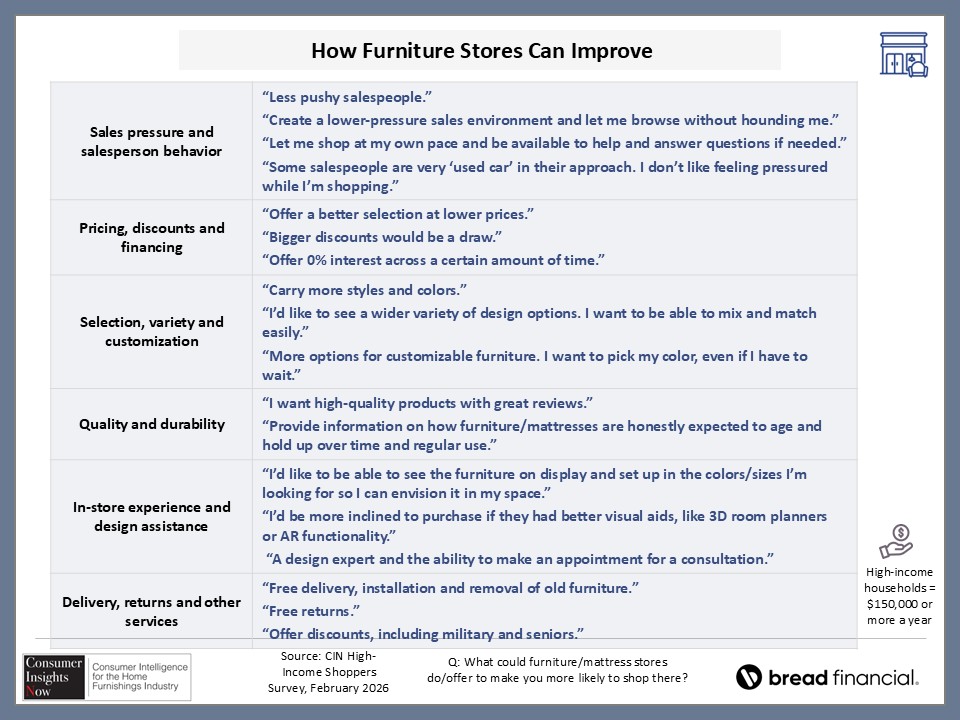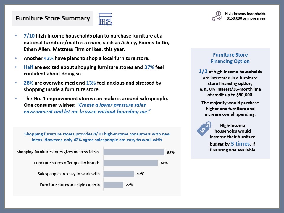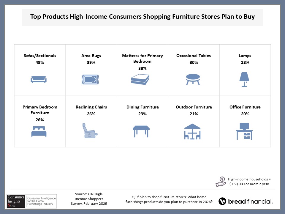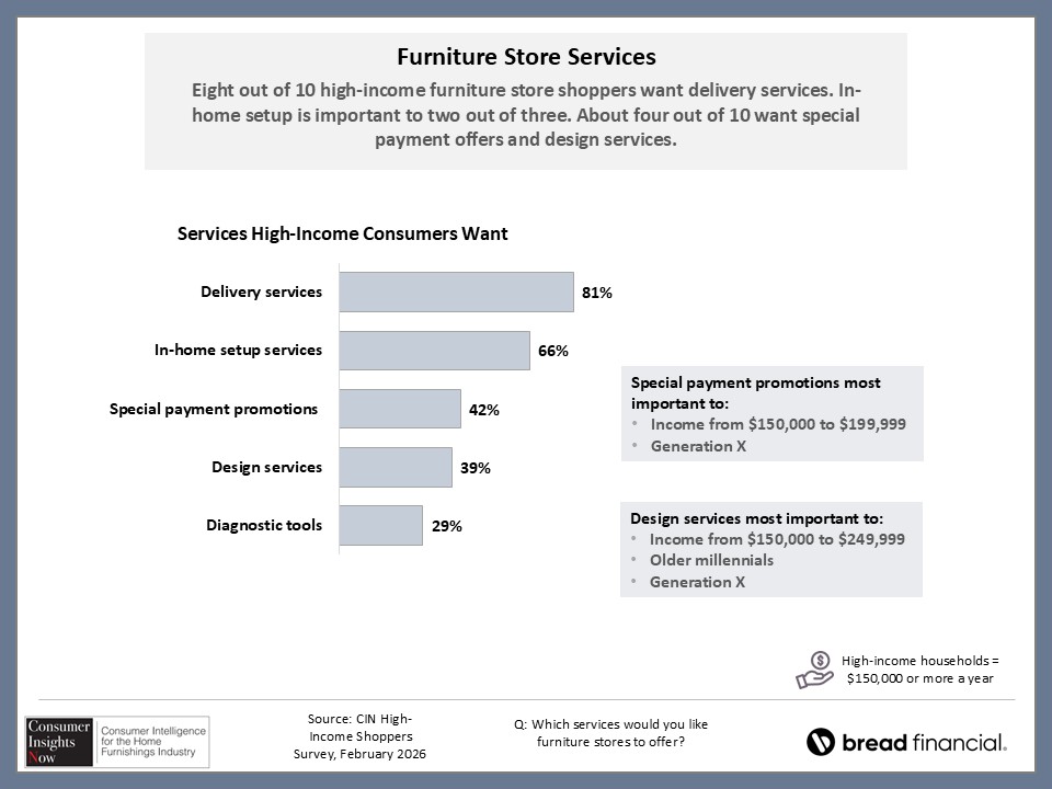 The good news for retailers is that many of these higher earners want to shop at a retail store, knowing that they can see and feel the product in person. However, there are certain things retailers should know about these consumers before they come through the door. This includes the types of products and services they are seeking along with the type of financing available, particularly since attractive financing likely will get them to spend more. For these and other insights, scroll through the slides below.