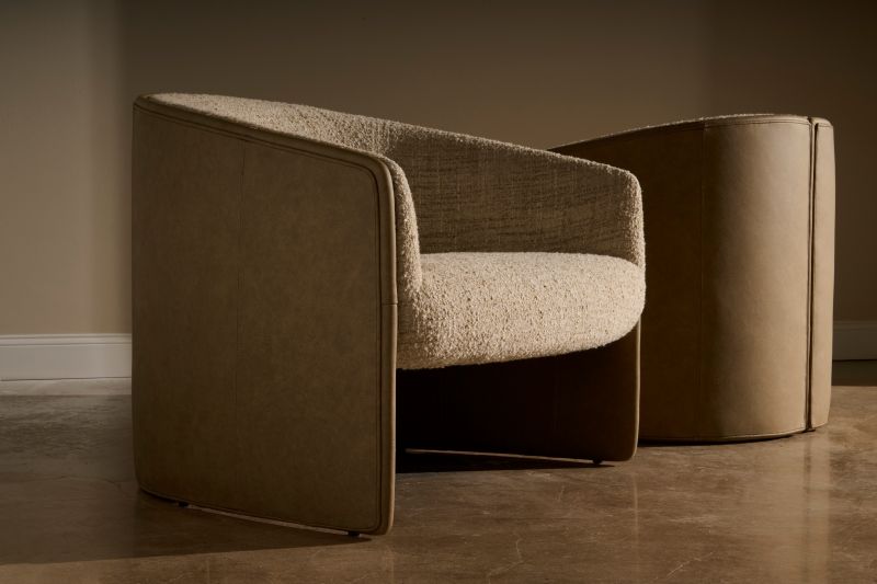 A refined club form, Asher features full-grain Italian leather, architectural lines and a smooth swivel base suited for modern living. The style is available in both fabric and leather, with options for tailored, skirted or slipcovered finishes. It can also be adapted for outdoor use.